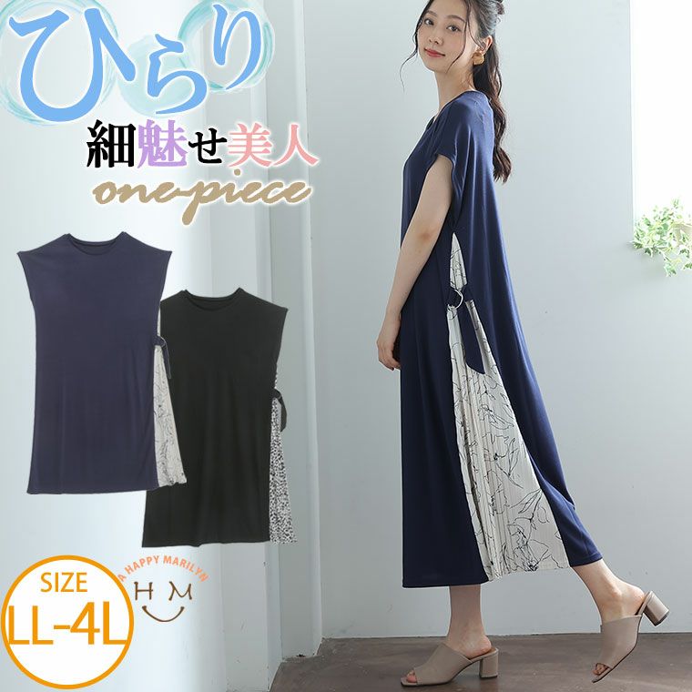 カットソー素材とプリーツを組み合わせた着映えするワンピース