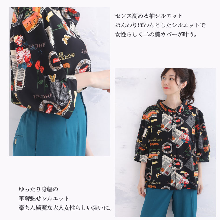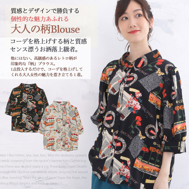 質感とデザインで勝負する 大人の柄ブラウス