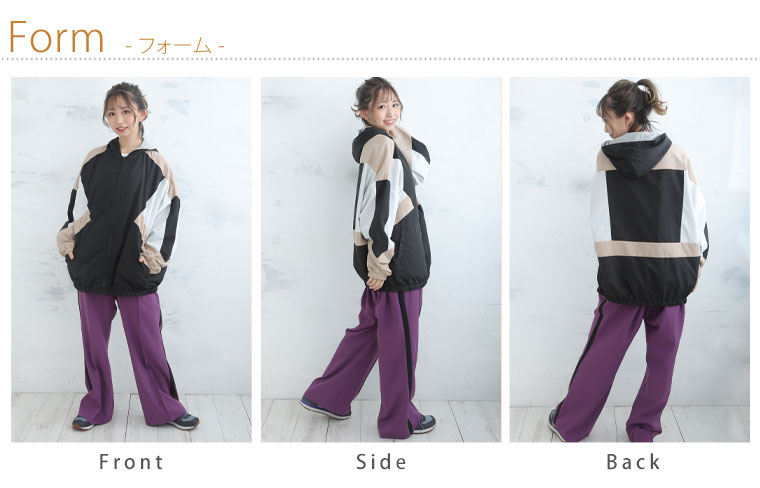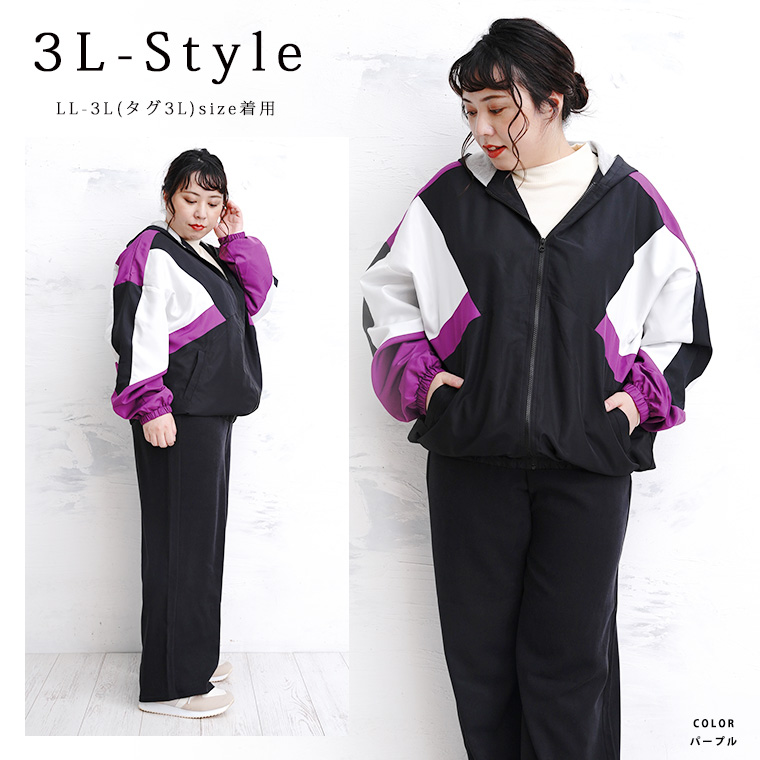 3. 大きいサイズ フード付き 配色 切替ブルゾン