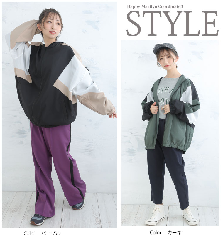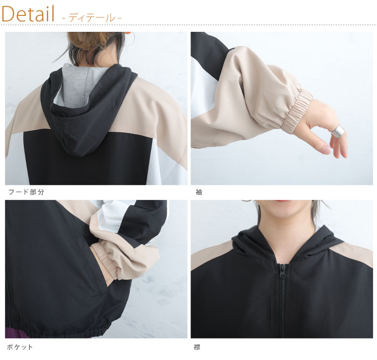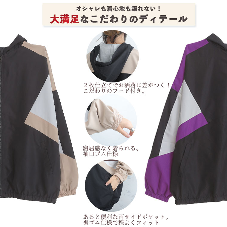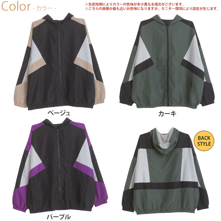 5. 大きいサイズ フード付き 配色 切替ブルゾン