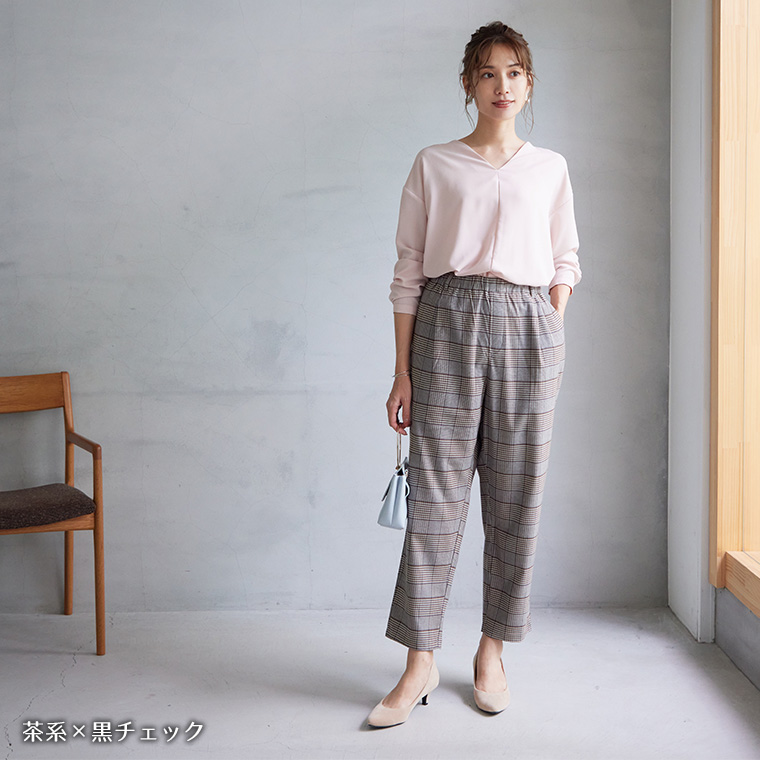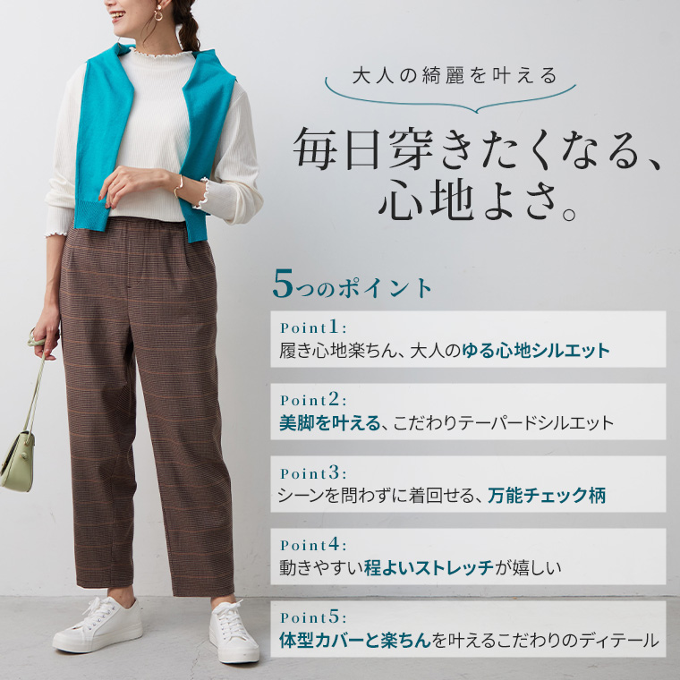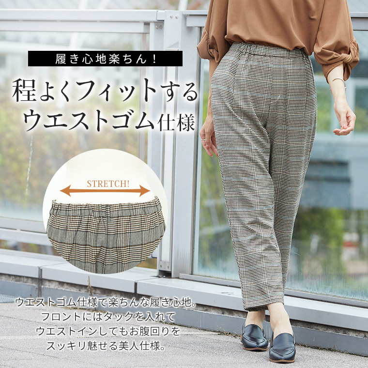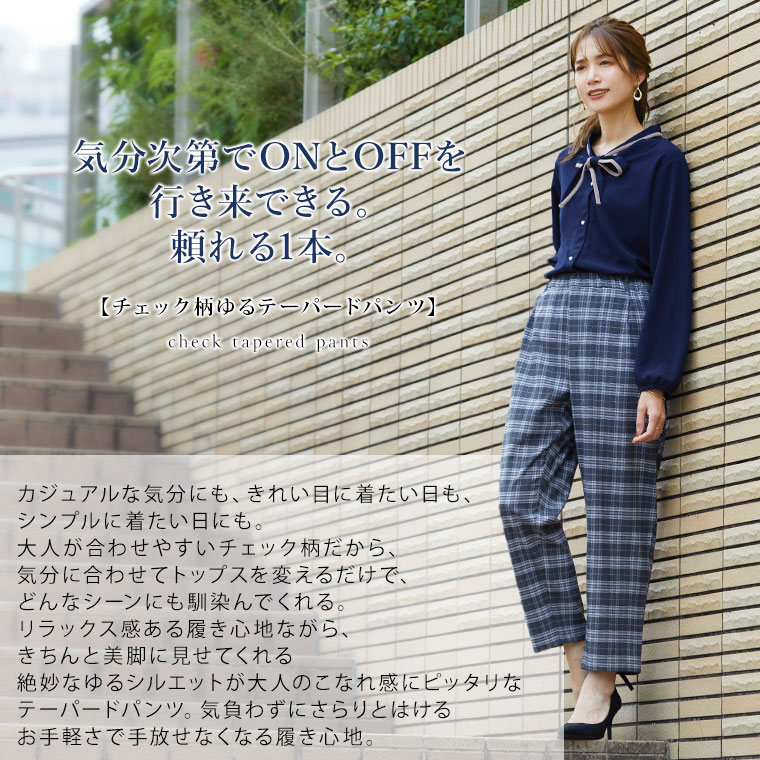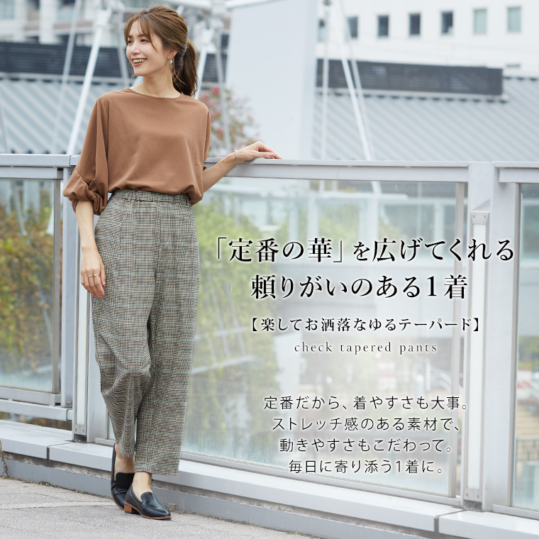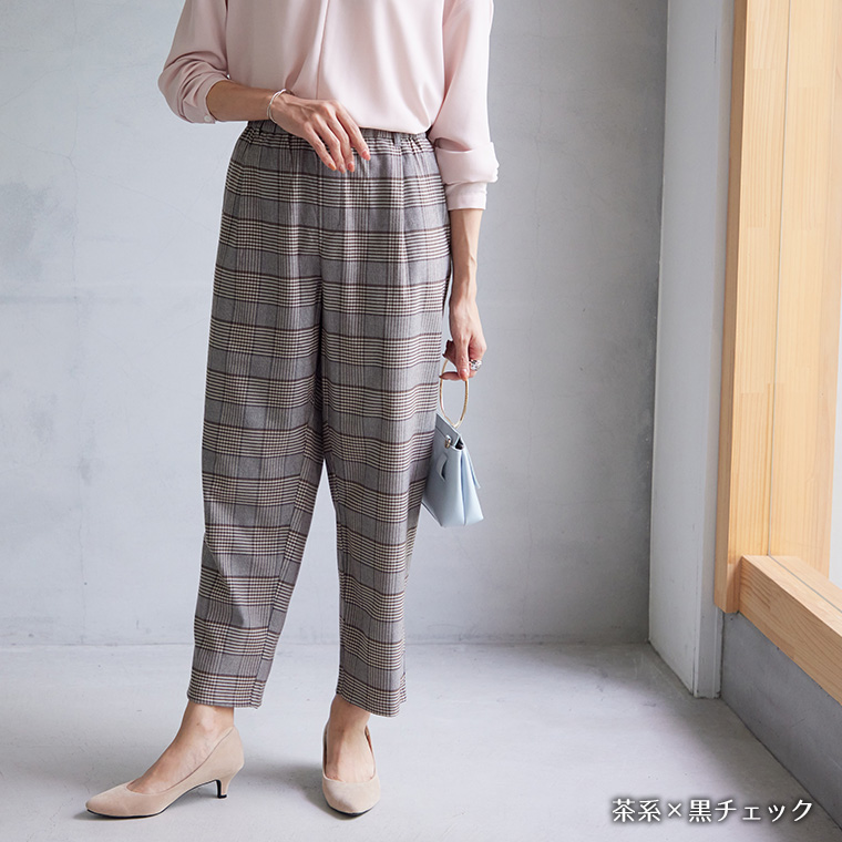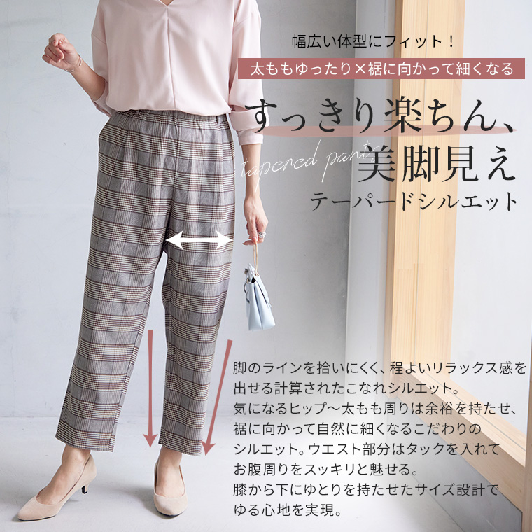 いつでもどこでも楽してお洒落なチェックテーパード
