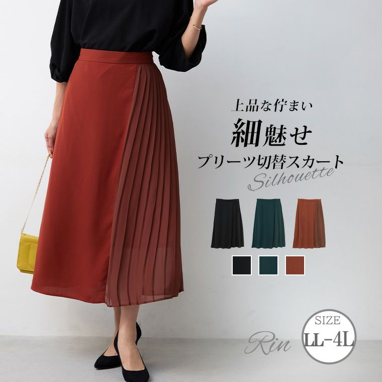 ボトムス ロングスカート LL 3L 4L 秋 秋物 秋冬 ぽっちゃり ゆったり かわいい おしゃれ ナチュラル プラスサイズ リン きれいめ 上品 華やか 高見え エレガント Rin 異素材 サイドプリーツ スカート | 大きいサイズの通販ならハッピーマリリン