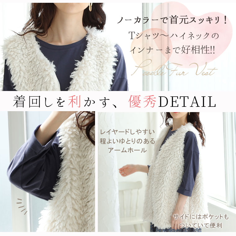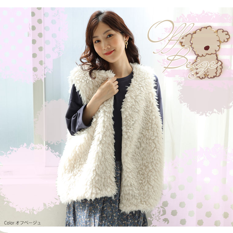 ふわふわ毛足の質感が可愛い プードルファーマタギベスト
