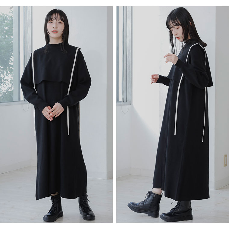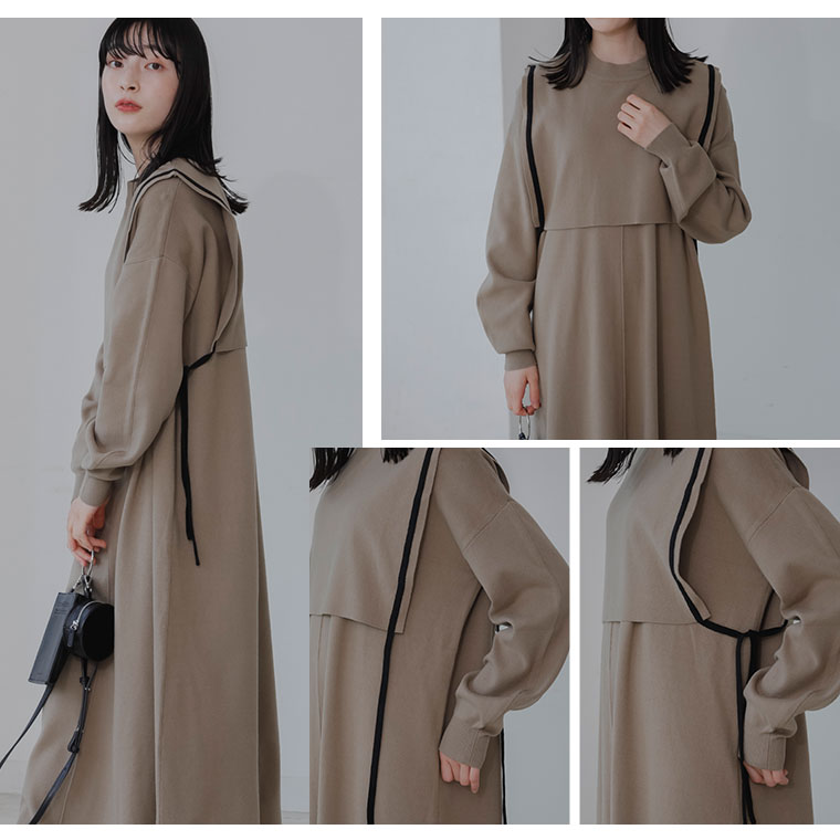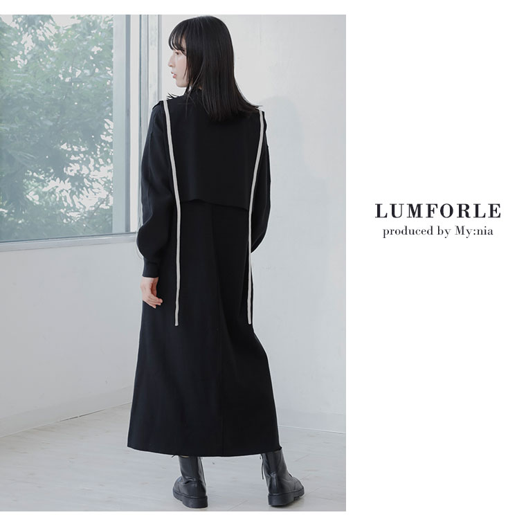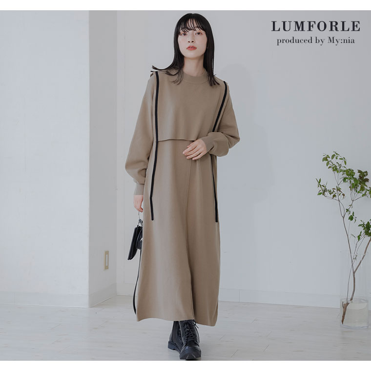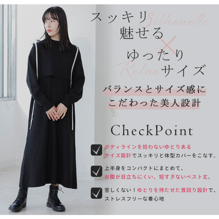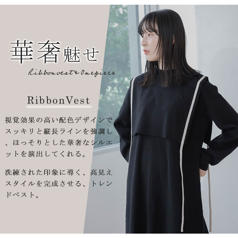 5. 大きいサイズ 【LUMFORLE produced by My:nia】総針配色 リボンベスト+ワンピ