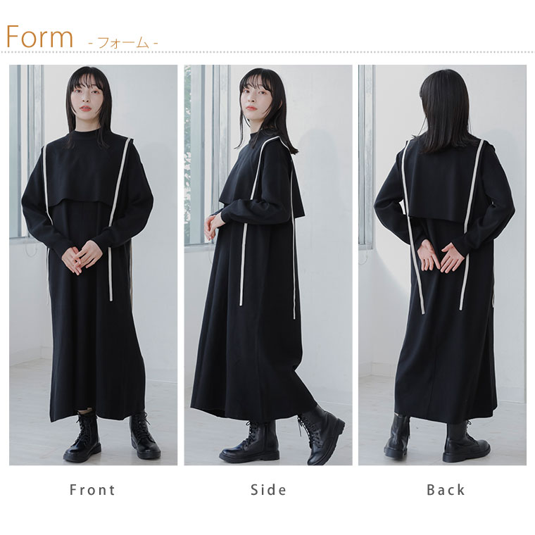 4. 大きいサイズ 【LUMFORLE produced by My:nia】総針配色 リボンベスト+ワンピ