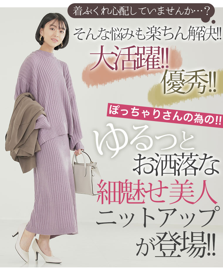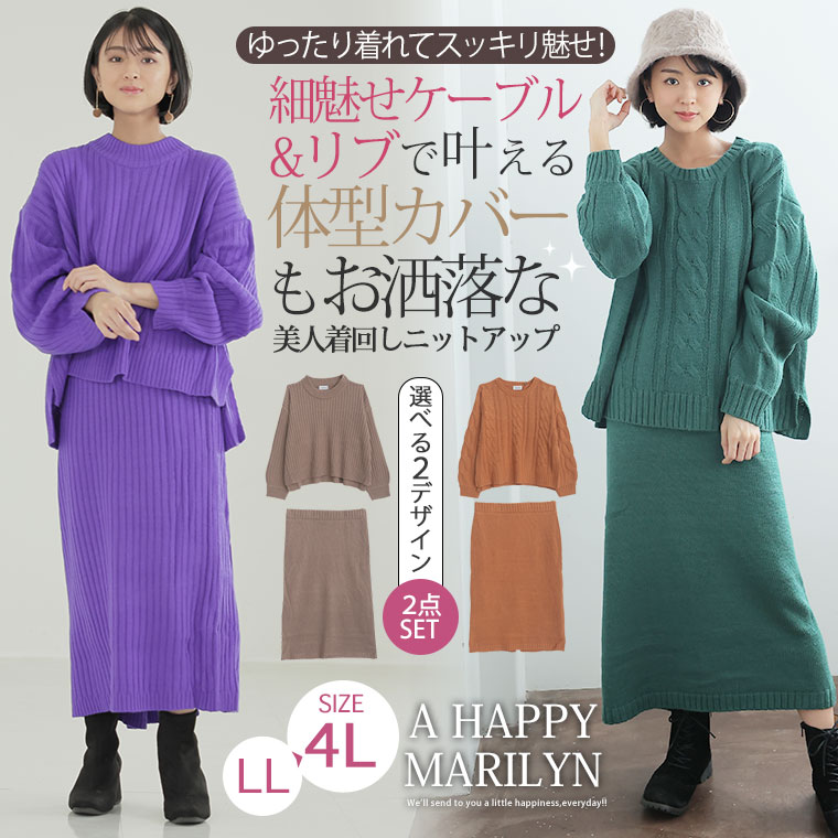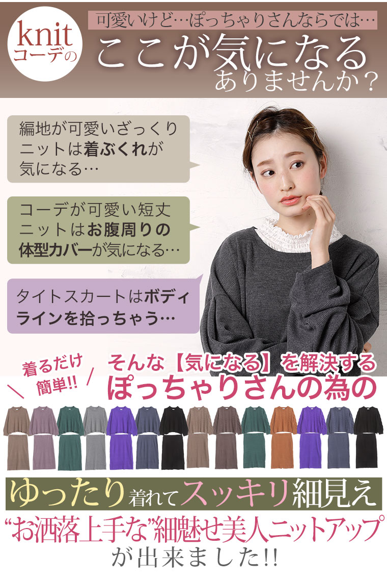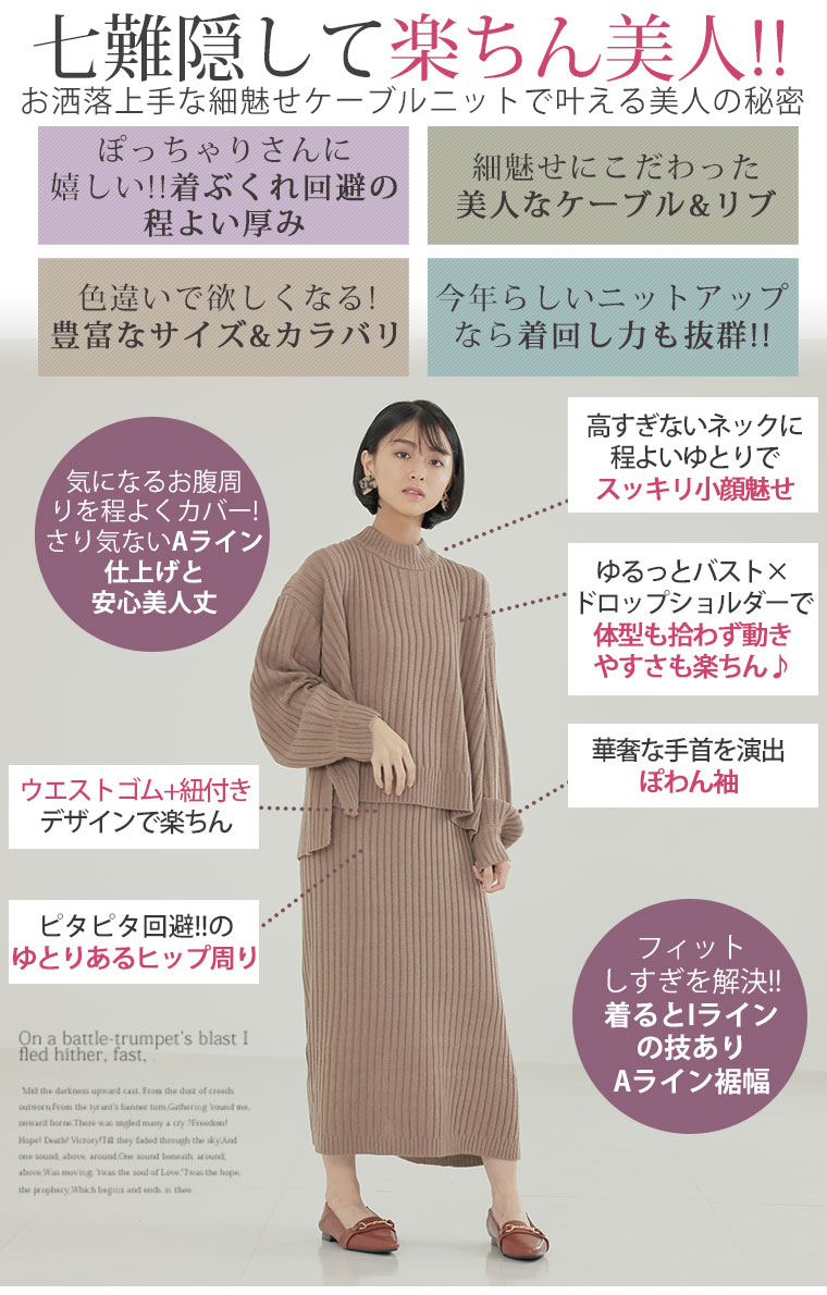 上下セット set LL 3L 4L 秋 秋物 秋服 冬 冬物 冬服 ぽっちゃり ゆったり かわいい おしゃれ カジュアル ナチュラル プラスサイズ 選べる ニット セットアップ ニットアップ ケーブル リブ