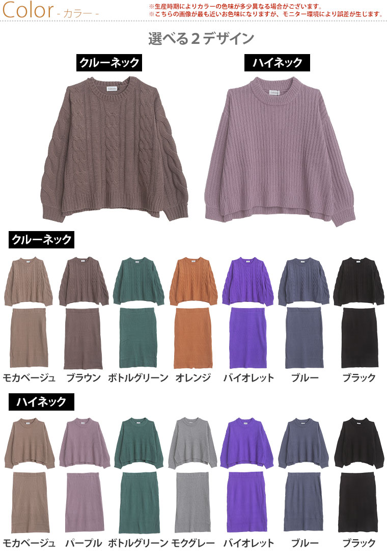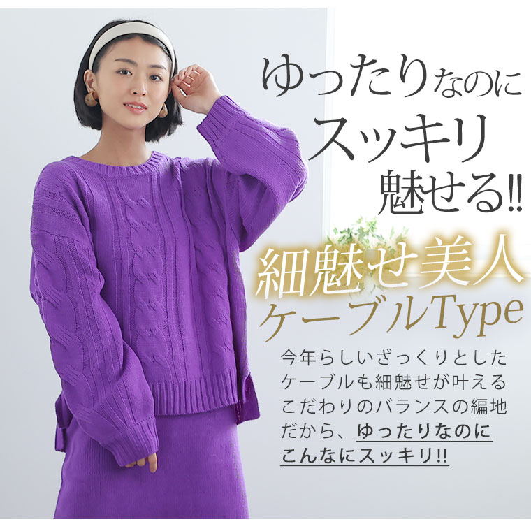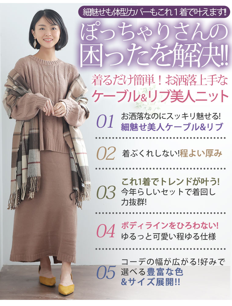 5. 大きいサイズ 選べる ニット セットアップ ニットアップ ケーブル リブ