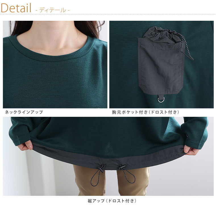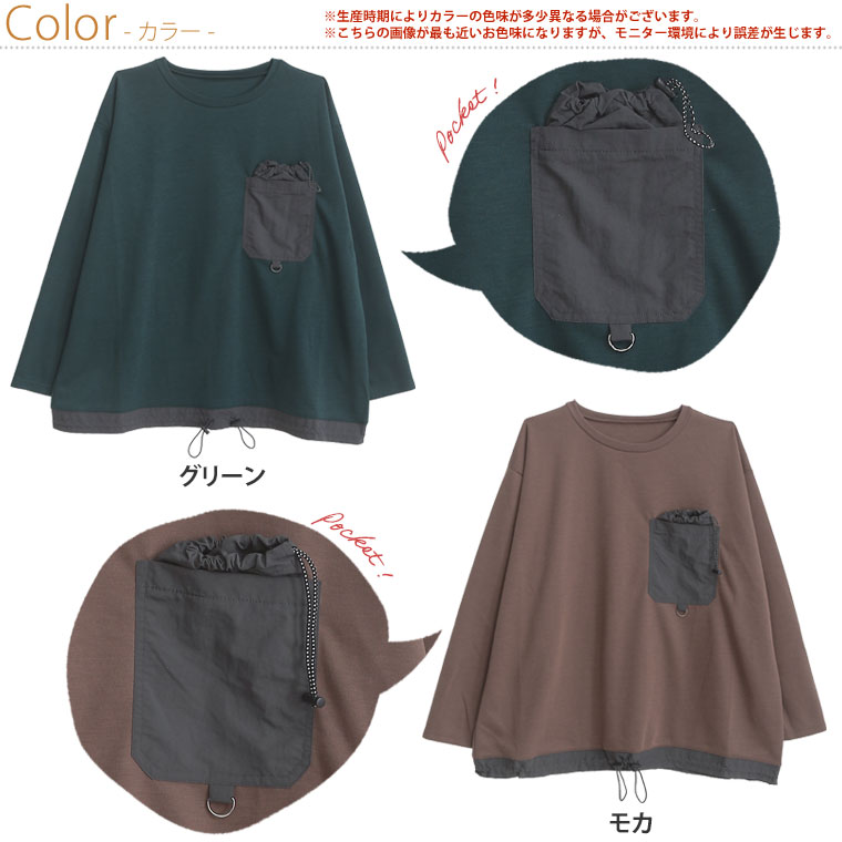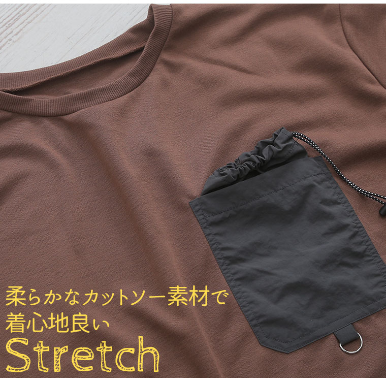 コインや小物も落ちない!便利な胸ポケット付きカットソー