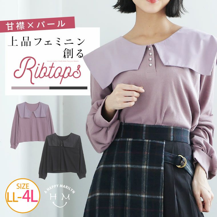 甘襟×パールで大人可愛い リブトップス