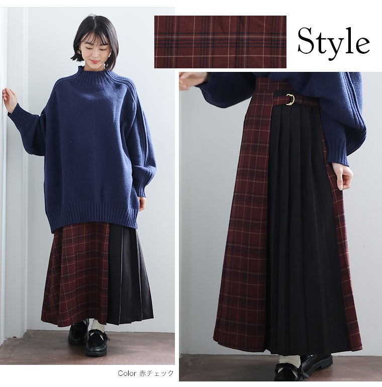お洒落に差がつく チェック柄切替スカート