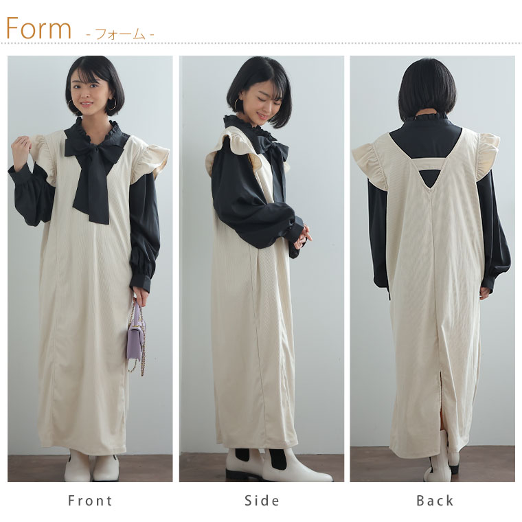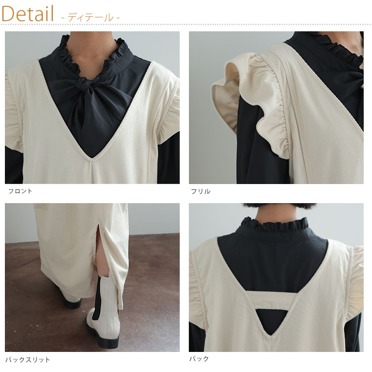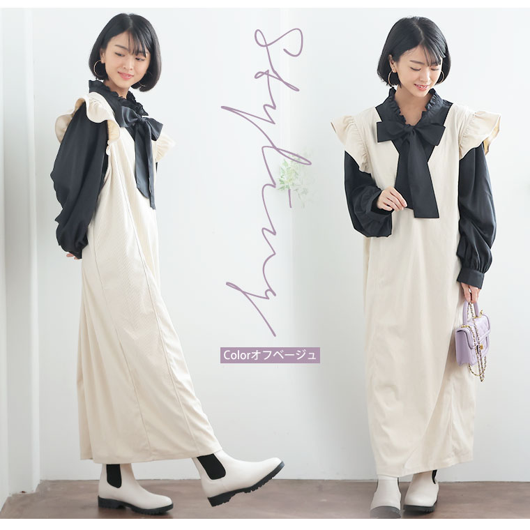 コーデュロイ素材でほの甘肩羽フリルジャンスカ
