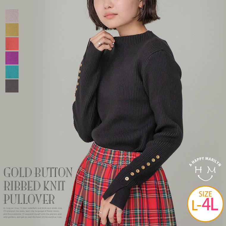 4. 大きいサイズ 【LAVEANGE】ゴールド釦 リブニット プルオーバー