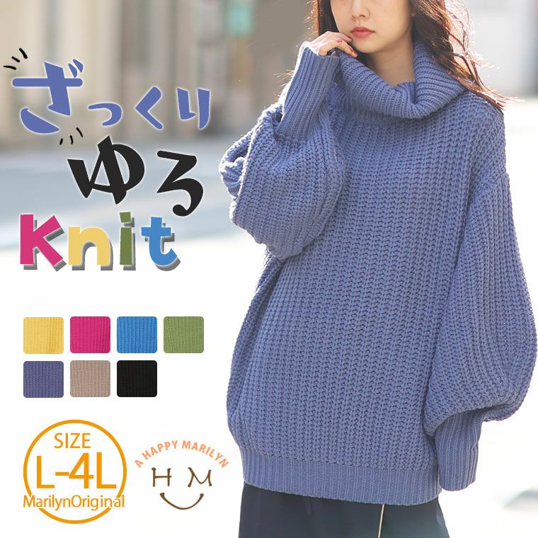 ふんわり体型カバーするもっちり肌触りのカラーネックニット