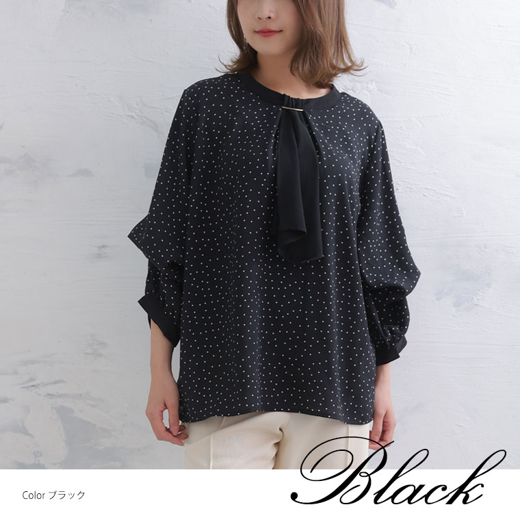大きいサイズ Rin オフィスでも活躍! 大人の 袖2way ドット柄 ボウタイブラウス 【セレモニー】