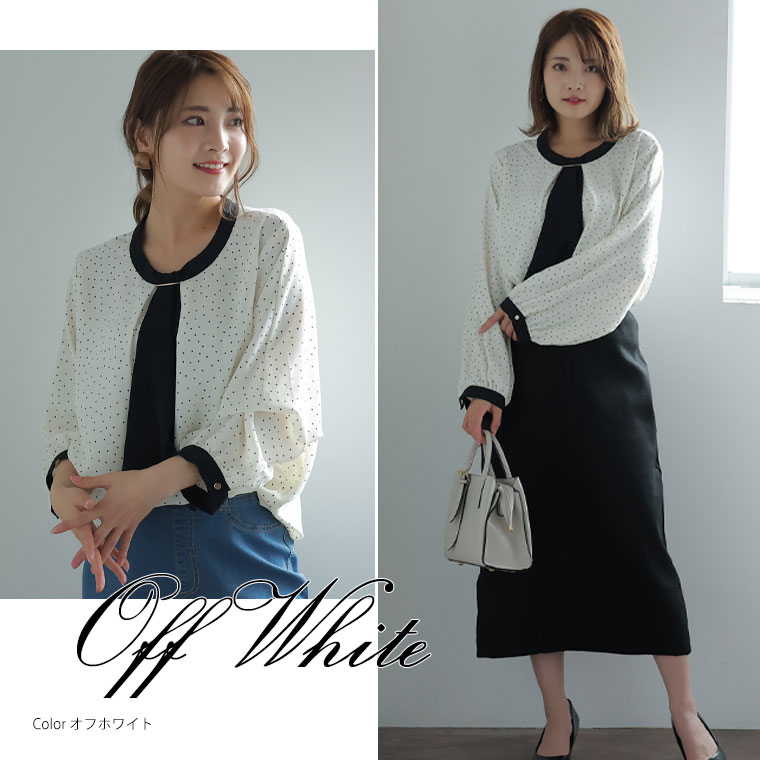 ボタン1つで2スタイル愉しめるドット柄ブラウス