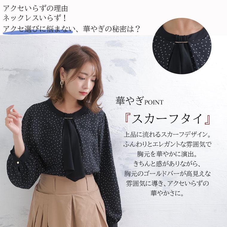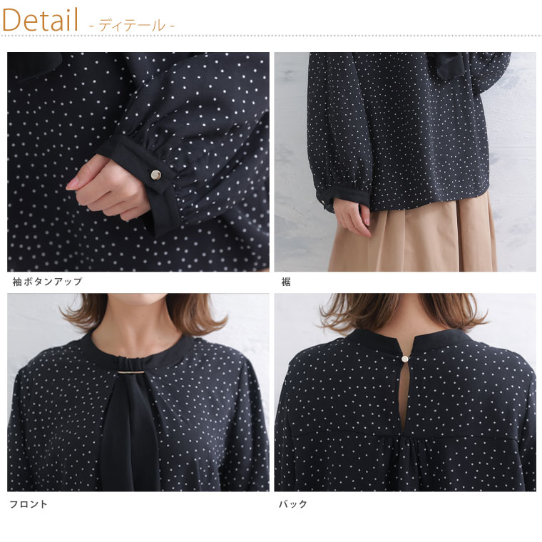 4. 大きいサイズ Rin オフィスでも活躍! 大人の 袖2way ドット柄 ボウタイブラウス 【セレモニー】