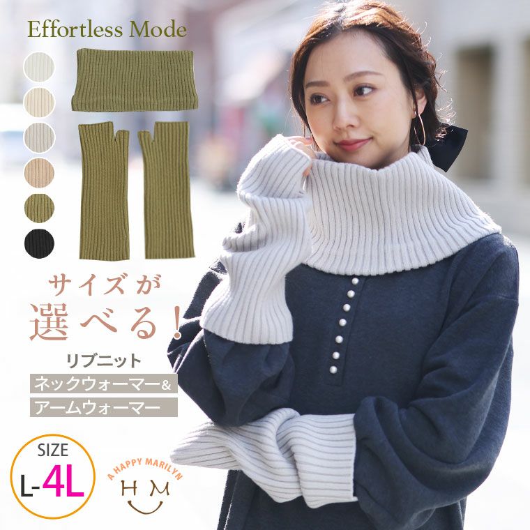リブ素材でぴったり!ネックウォーマーとアームウォーマー 2点セット