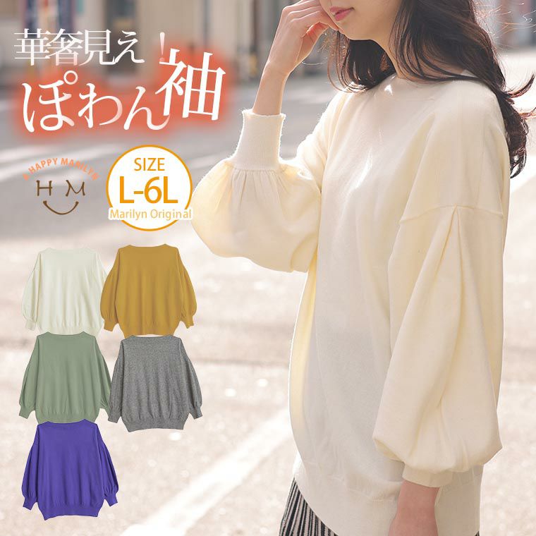 二の腕をコンパクトに。ぽわん袖ニット