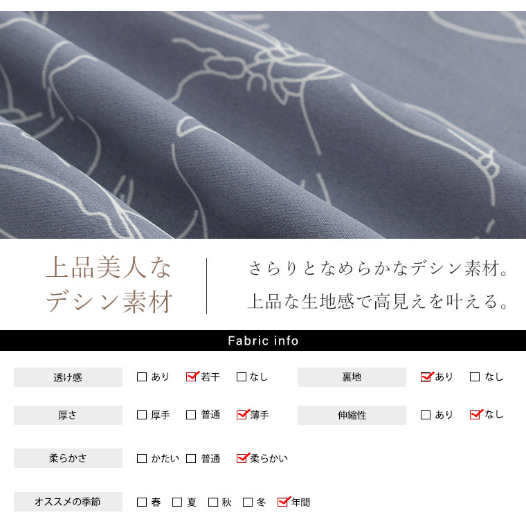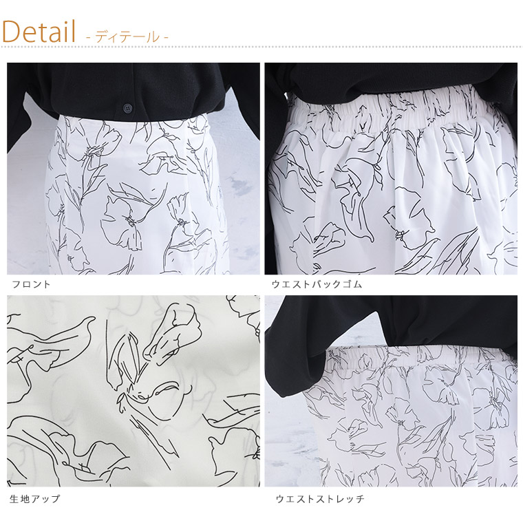線画タッチの上品な花柄で大人のほの甘スタイル