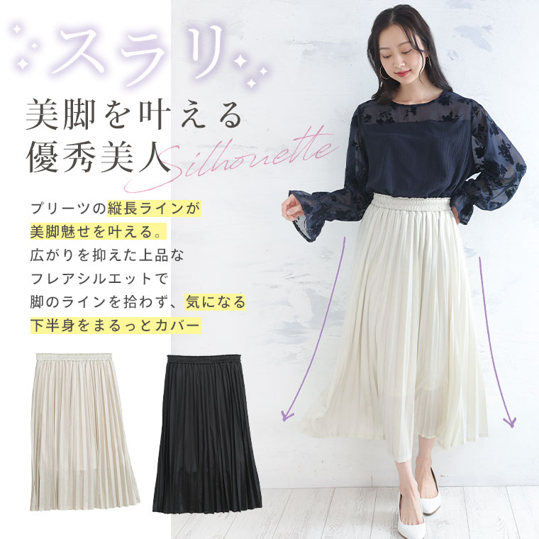 上品美人 シャイニーカットプリーツスカート