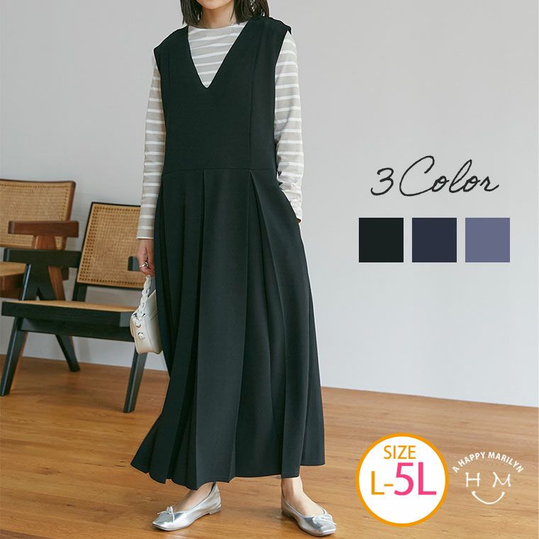 大きいサイズ 【LAVEANGE】ウエストタック入り ジャンスカ | 大きいサイズの通販ならハッピーマリリン