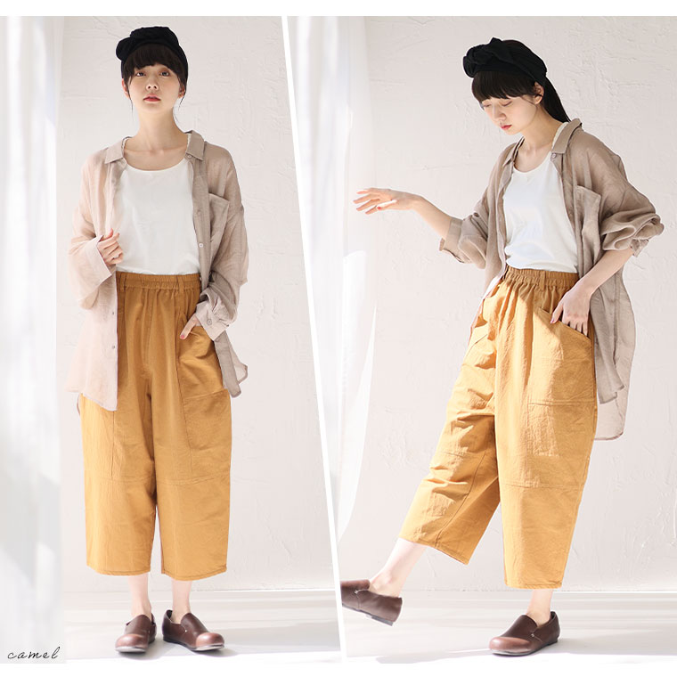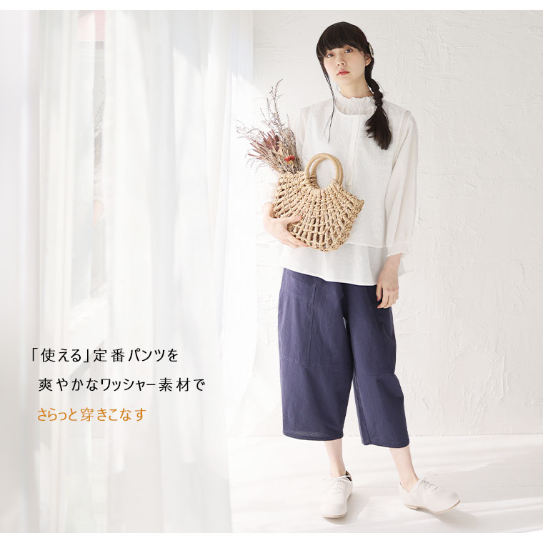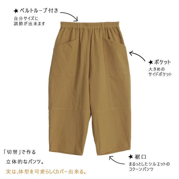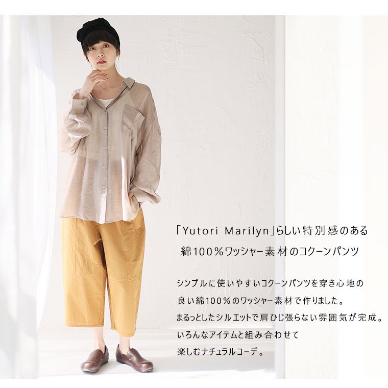 「Yutori Marilyn」らしい特別感のある 綿100%ワッシャー素材のコクーンパンツ