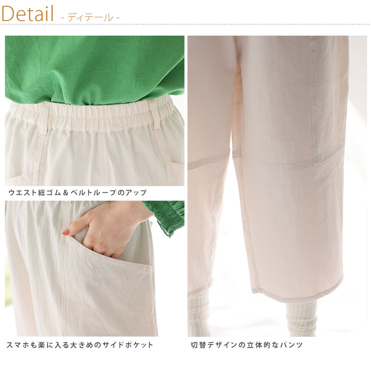 「切替」で作る立体的なパンツ。体型を可愛らしくカバー出来る。