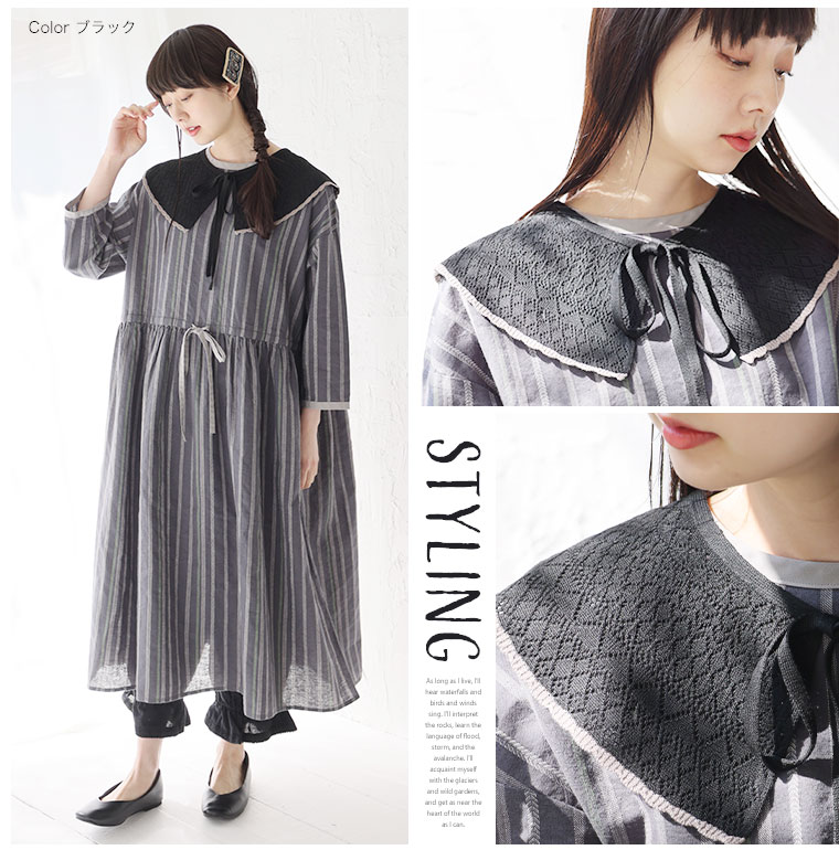【ゆとりMARILYN】配色使いの透かし柄つけ襟