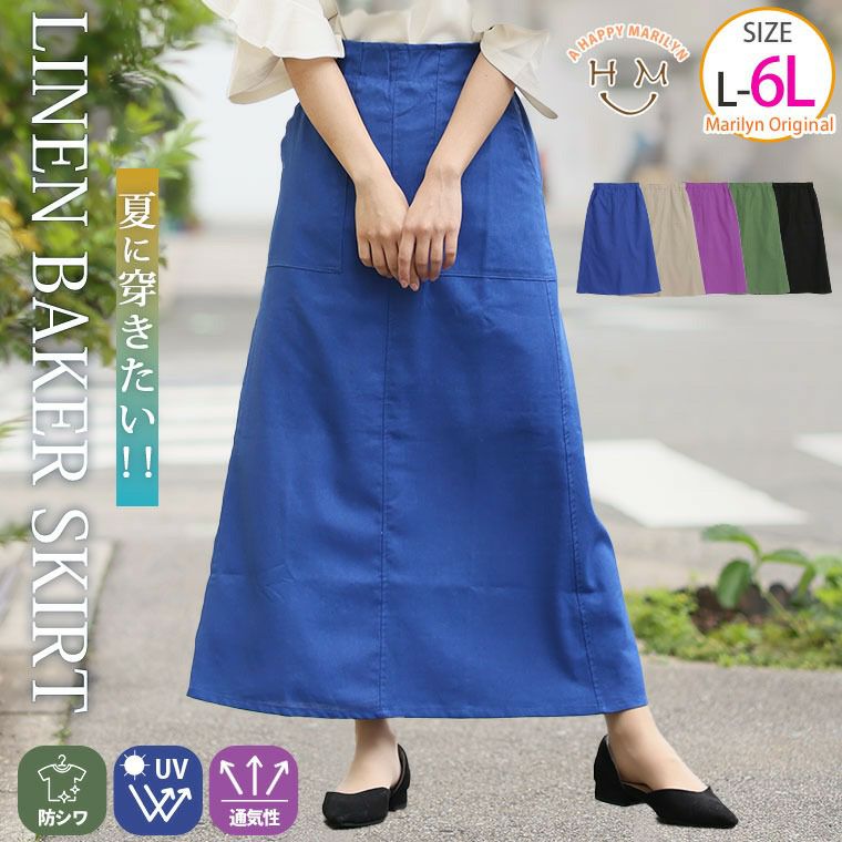 涼やかにスラリと夏美人なリネン混ベイカースカート