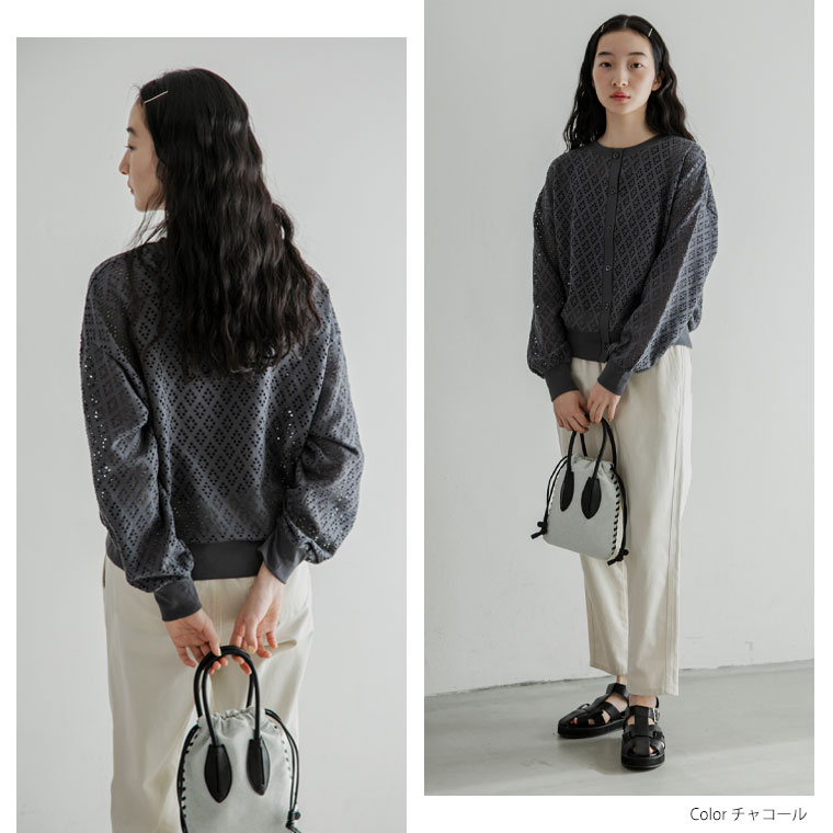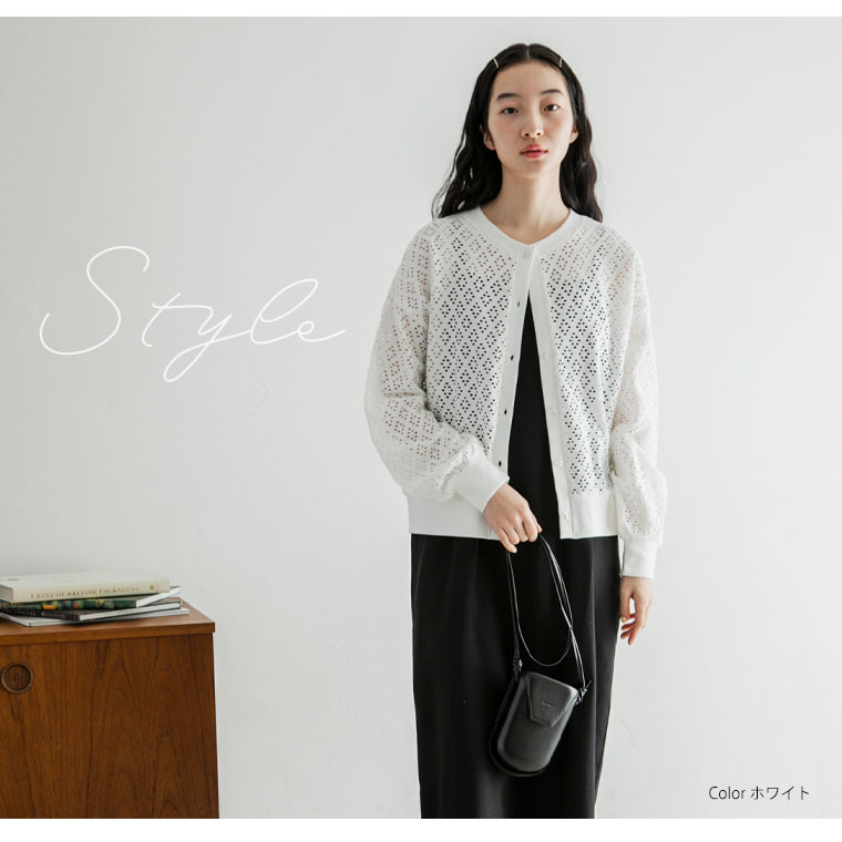 涼し気なアイレットレースカーディガン