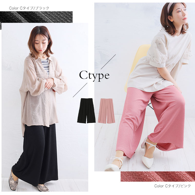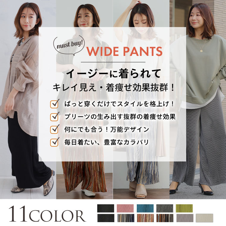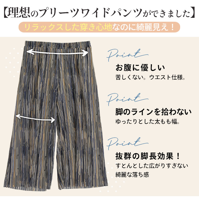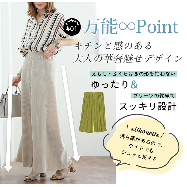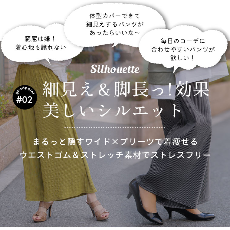 下半身の体型を隠す優秀ゆったりワイドデザイン