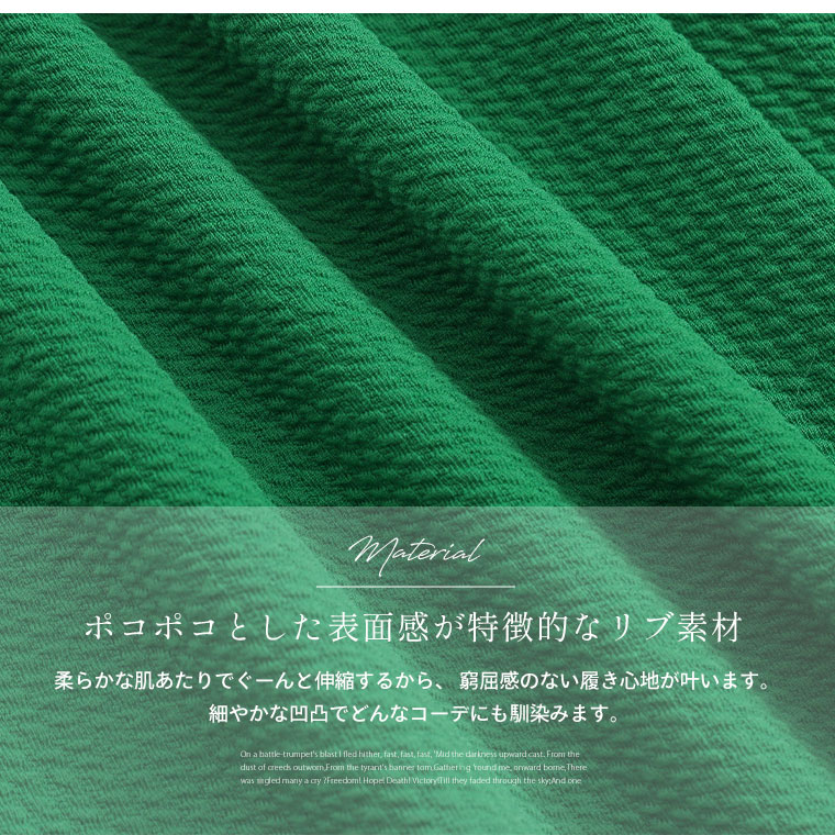 グーンと伸びるリブ素材で窮屈なく心地よい穿き心地