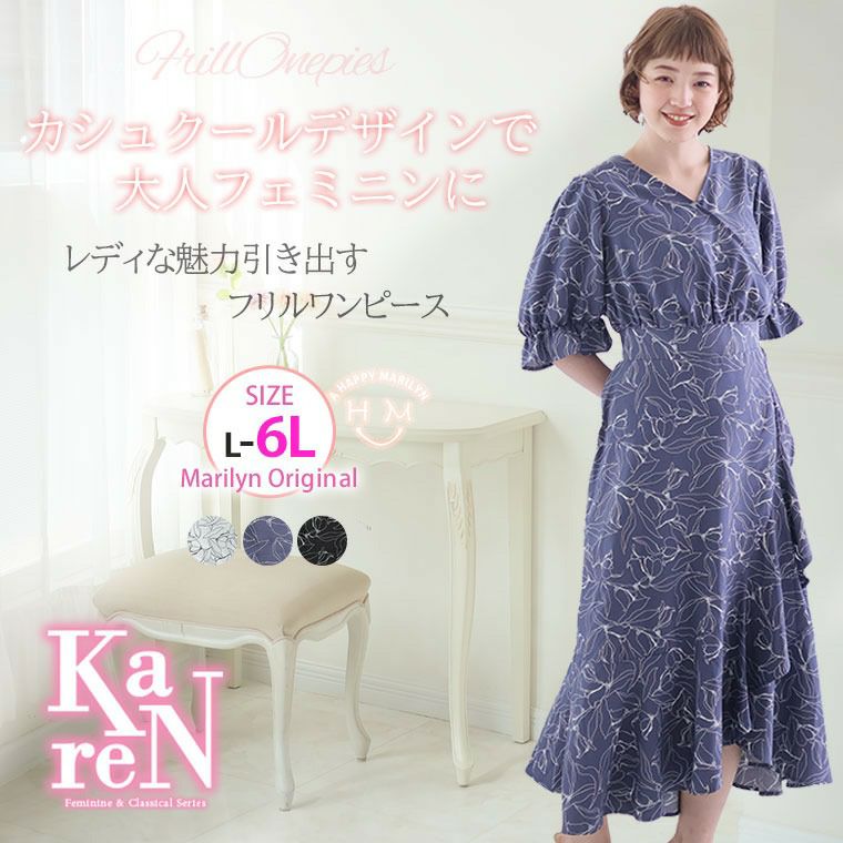 大きいサイズ KAREN カシュクール&フリル アシメスカートワンピース | 大きいサイズの通販ならハッピーマリリン
