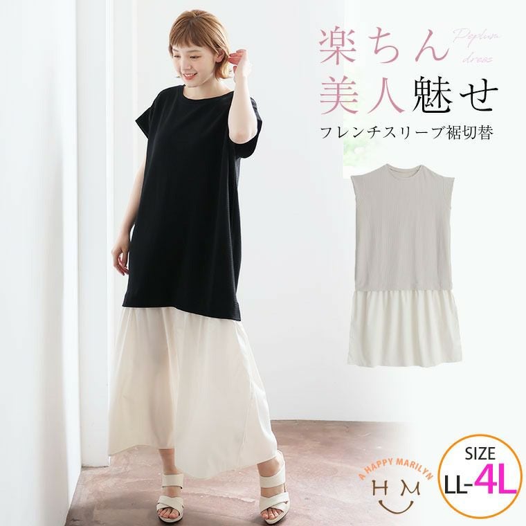 大きいサイズ フレンチスリーブ 裾切替え ペプラムワンピース | 大きいサイズの通販ならハッピーマリリン