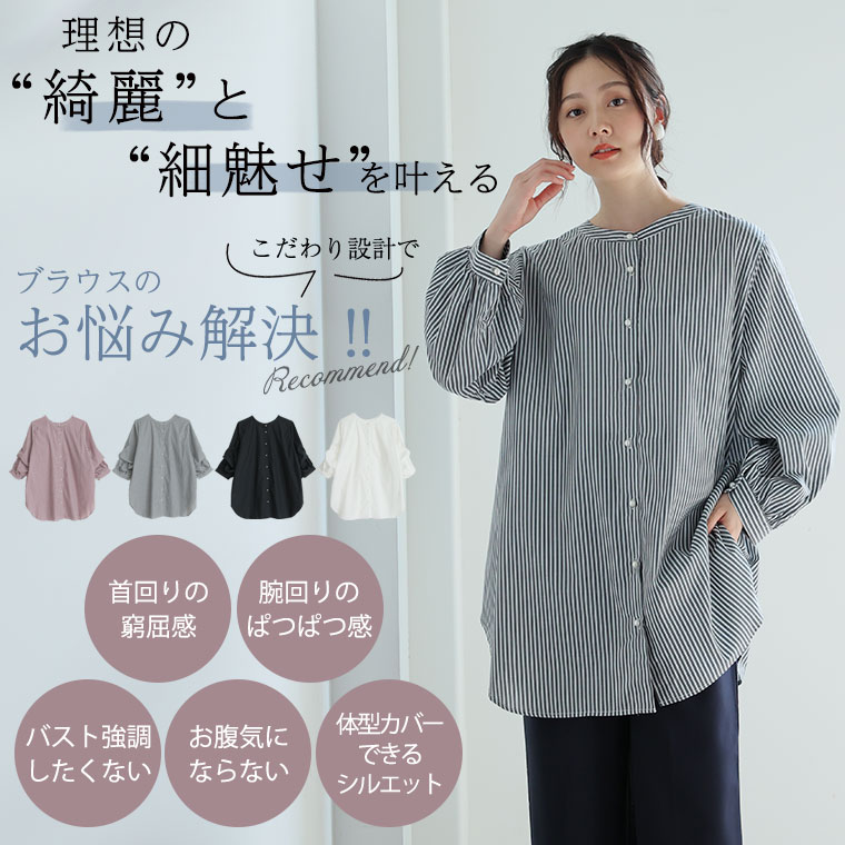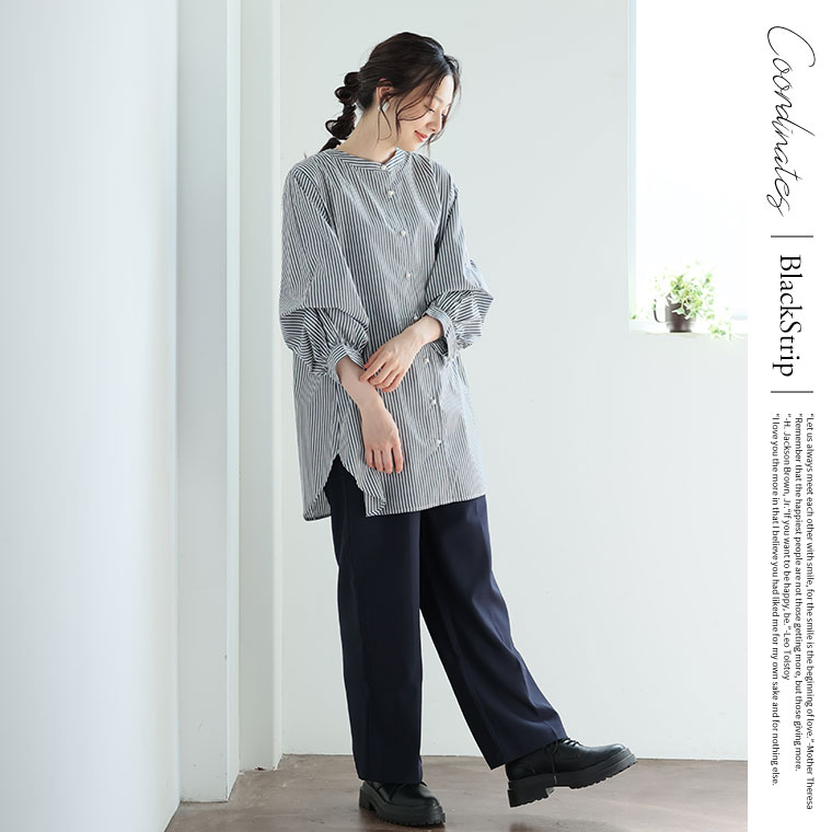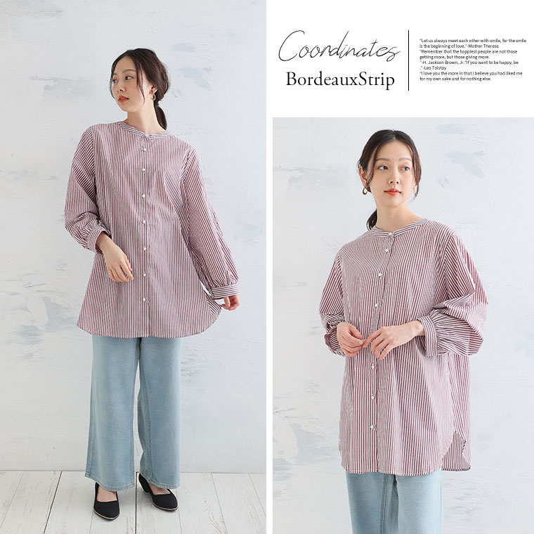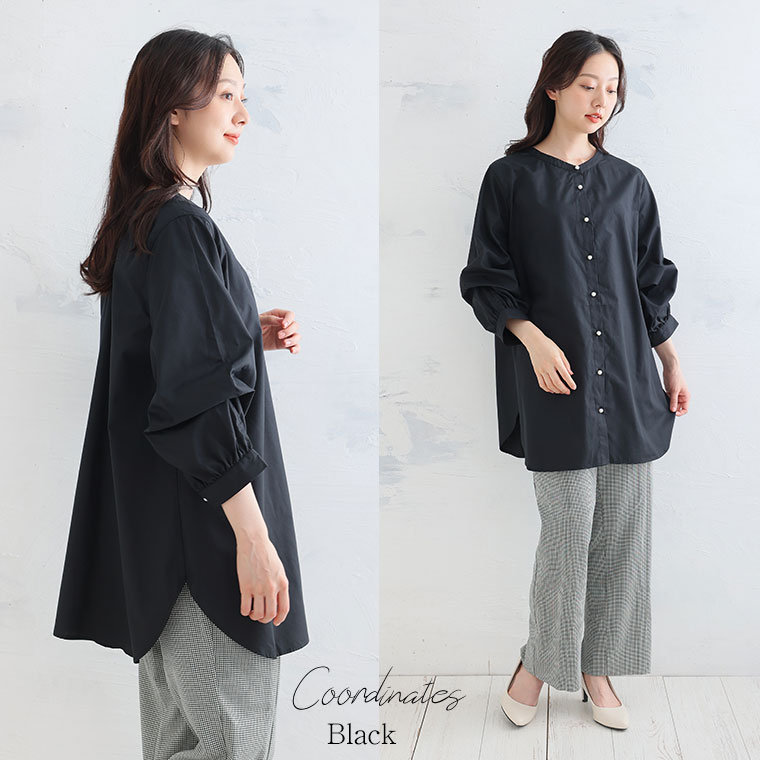 洗練された大人女性らしい、パールボタンを使用したシャツチュニック