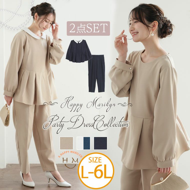 フェミニンさで魅了するペプラムトップス×テーパードパンツのセットアップ