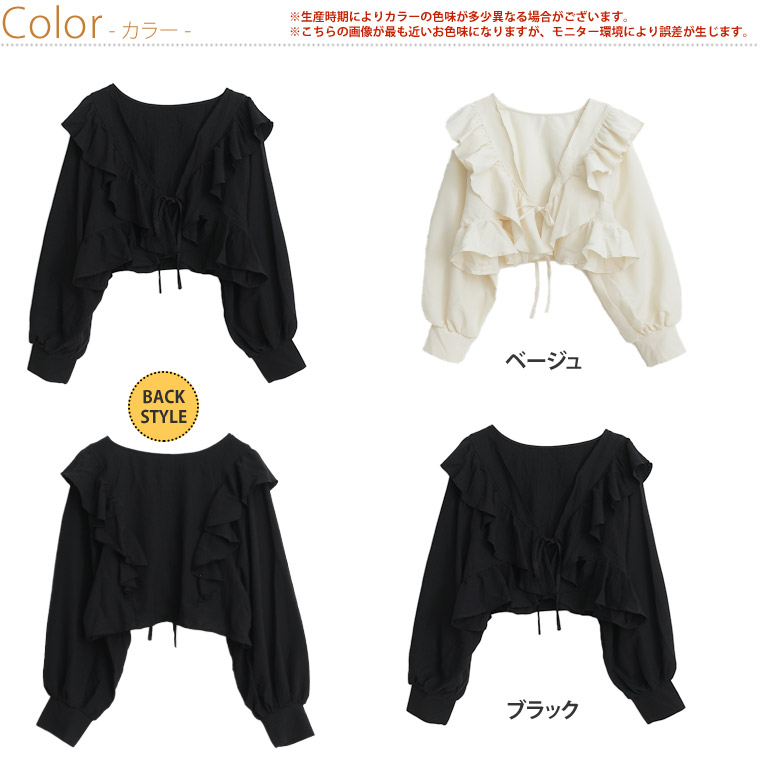 シャツ トップス LL 3L 4L 秋 秋物 秋冬 ぽっちゃり ゆったり 二の腕カバー 羽織り カーディガン カーデ カジュアル プラスサイズ フクレ織り フリルボレロ 長袖 ブラウス