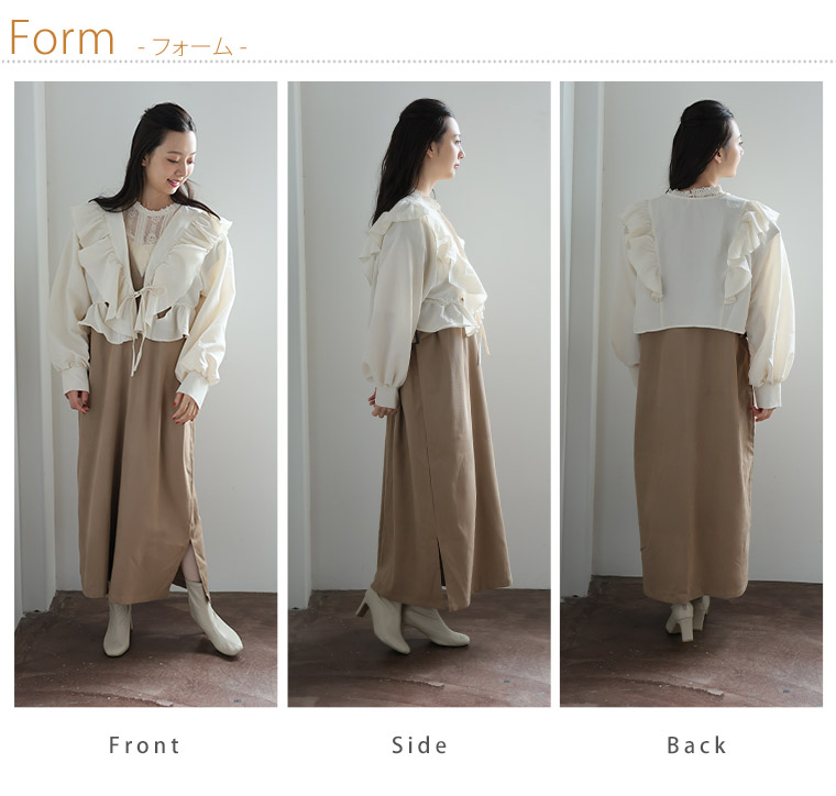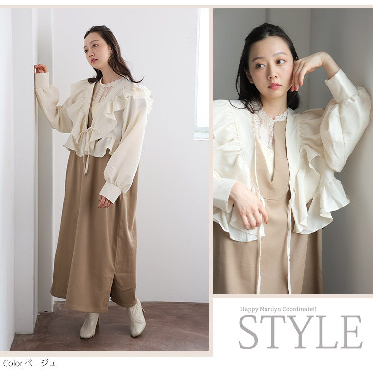 4. 大きいサイズ フクレ織り フリルボレロ 長袖 ブラウス