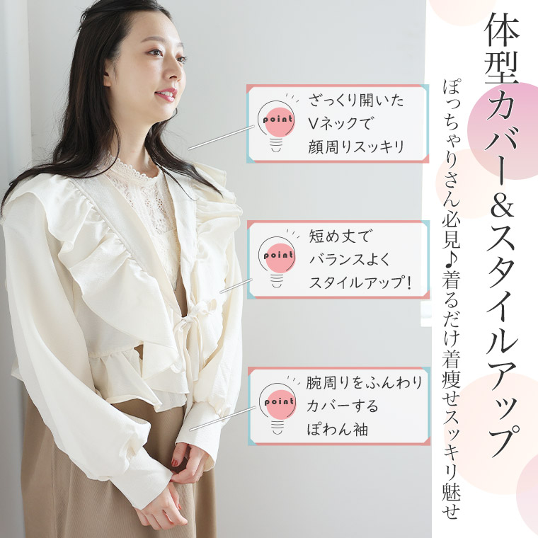 6. 大きいサイズ フクレ織り フリルボレロ 長袖 ブラウス
