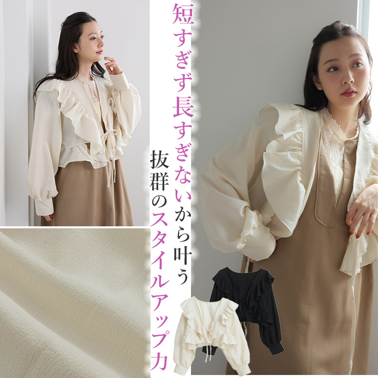 大きいサイズ フクレ織り フリルボレロ 長袖 ブラウス