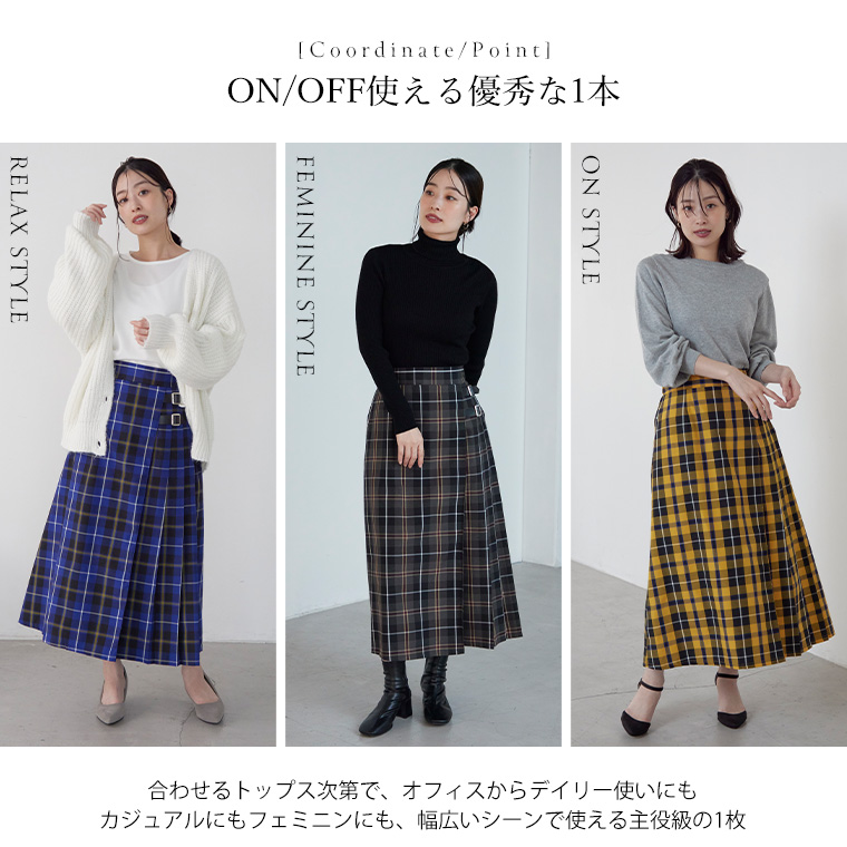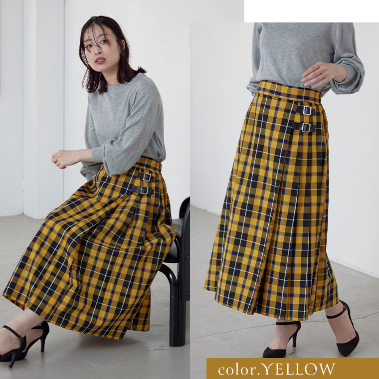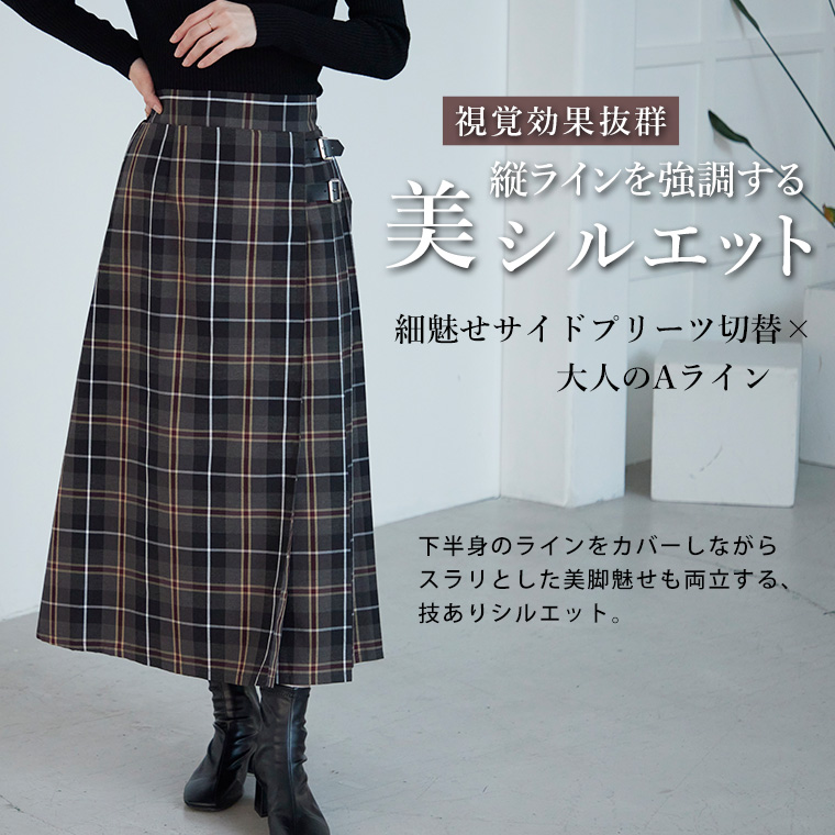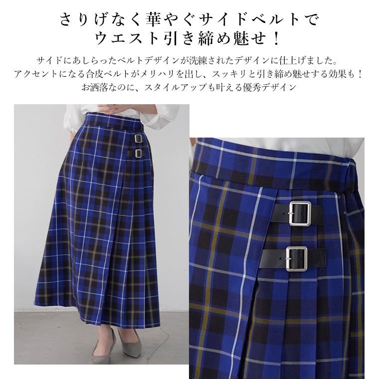 ベルテッドサイドプリーツ美人タータンチェックスカート