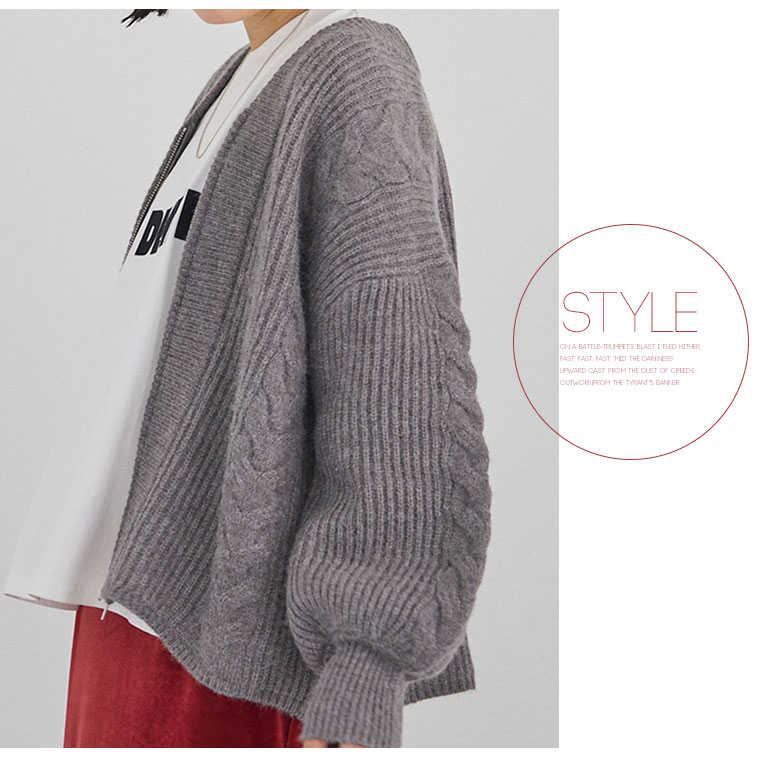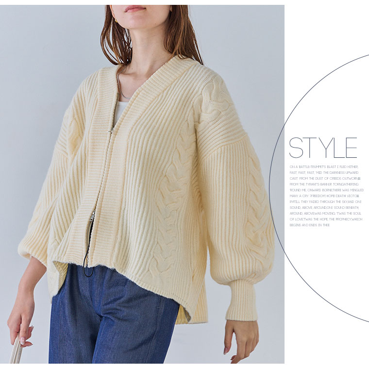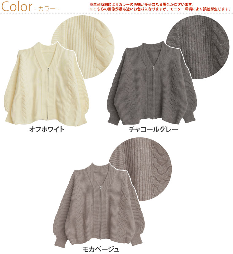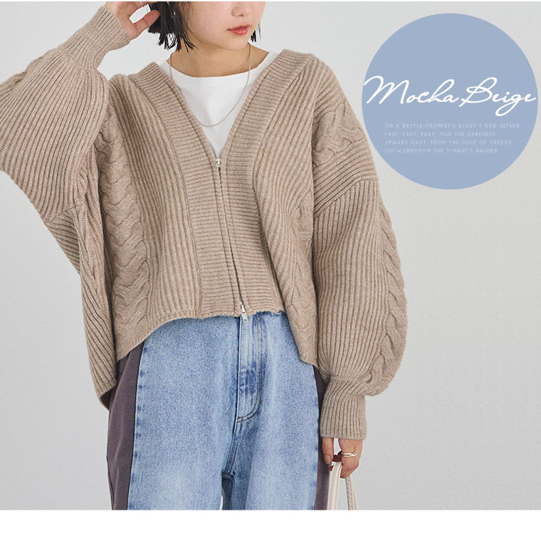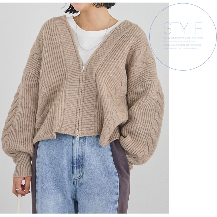 【LAVEANGE】ケーブル柄ニットジップカーディガン