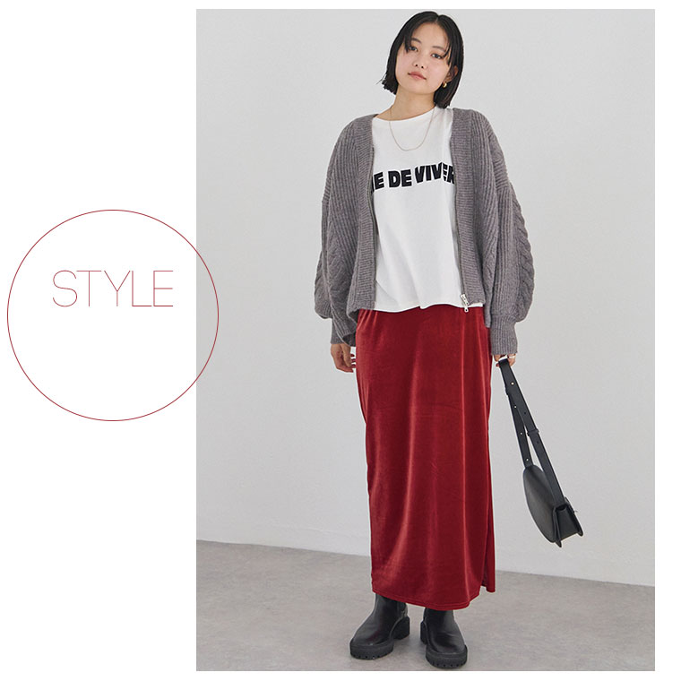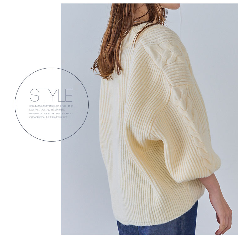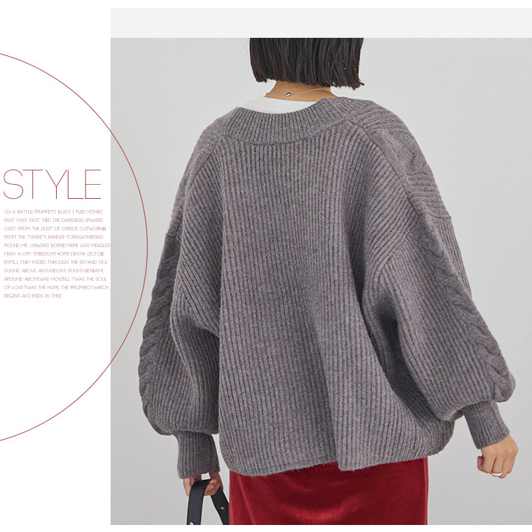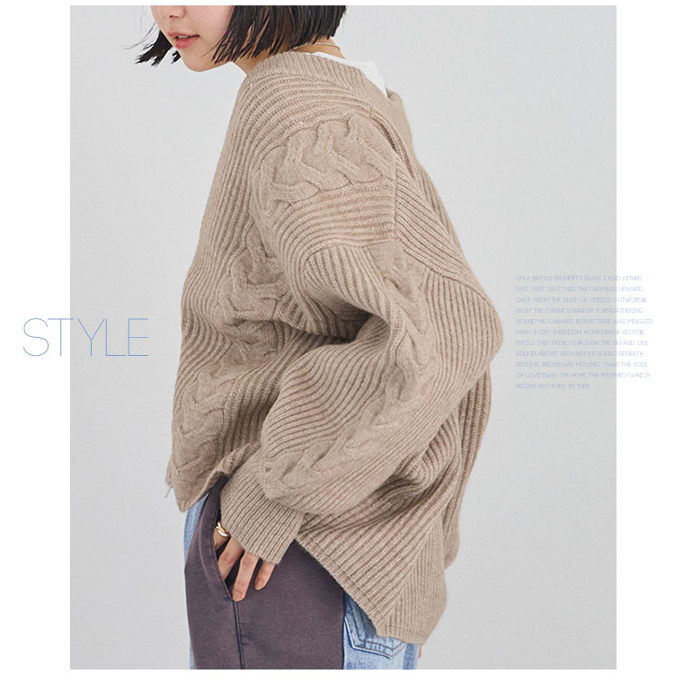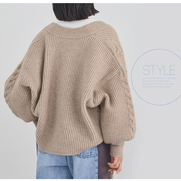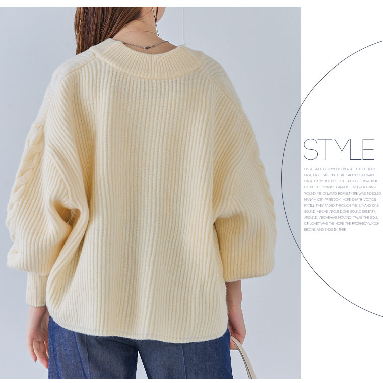 【LAVEANGE】ケーブル柄ニットジップカーディガン