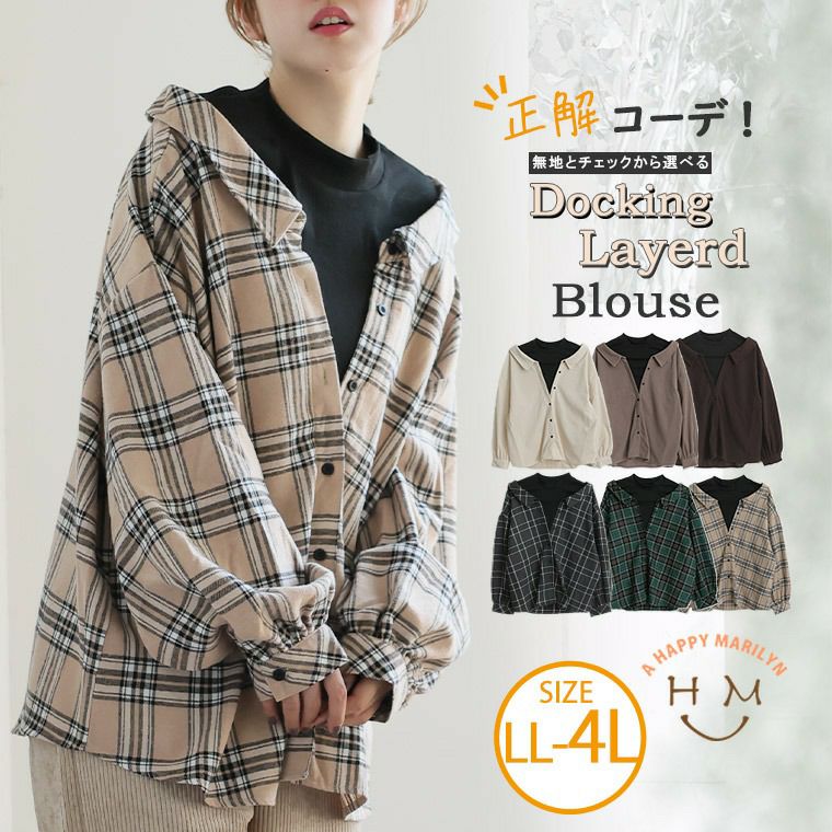コーデュロイとチェックから選べるフェイクレイヤードブラウス
