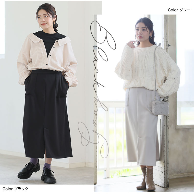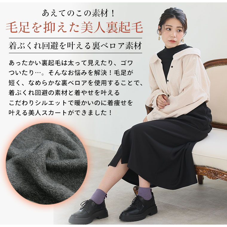 切り替えで叶える! 魔法の着やせ 裏ベロア タイトスカート
