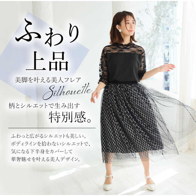 ラメの輝きが美しい存在感のあるフレアスカート
