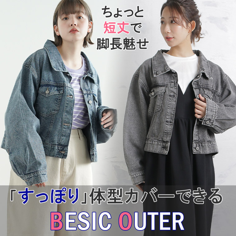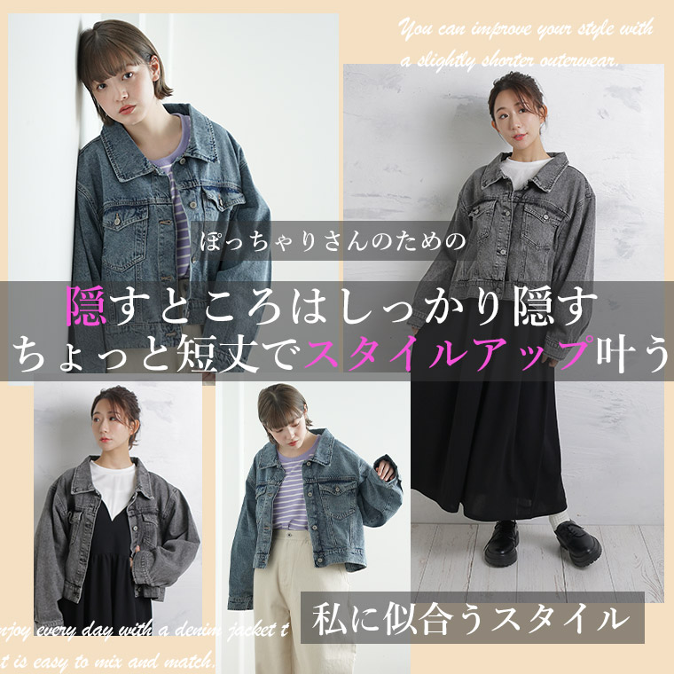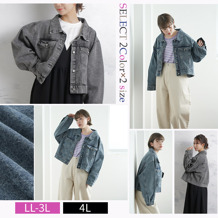 ブルゾン ジャケット LL 3L 4L 春 春物 春服 ぽっちゃり ゆったり デニム 羽織り 胸周り 二の腕カバー デニムジャケット おしゃれ カジュアル ナチュラル プラスサイズ ゆるシルエット 袖ボリューム Gジャン