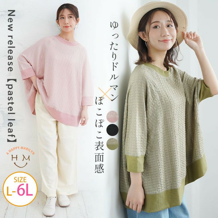 【Pastel leaf】リブ使いドルマン長袖プルオーバー