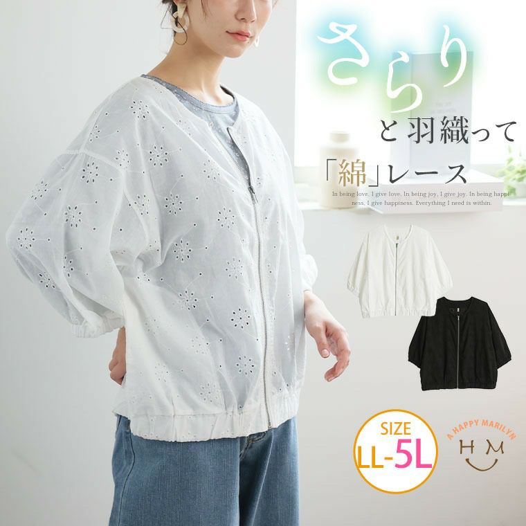 さらりと羽織れる 綿レースブルゾン