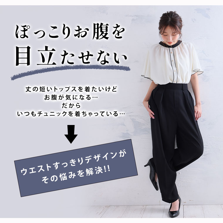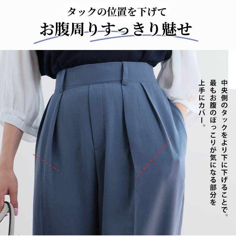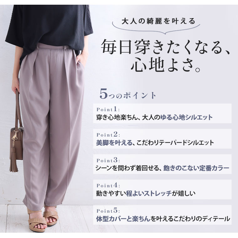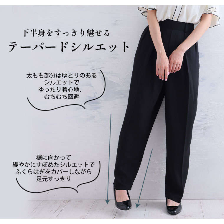 こだわりタックでぽっこりお腹も目立たない 穿くだけキレイをつくれるテーパードパンツ